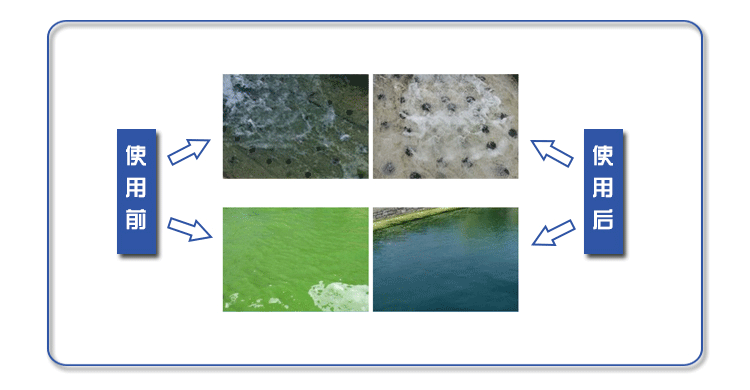 采用冲击式加药,投加量一般为 100-200mg/L,即对菌藻类有杀灭效果。藻类较多时如欲获得快速剥离效果可适当加大用药量,并及时清除漂浮物。